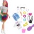 - Barbie Capelli Multicolor con i seguenti accessori eleganti, perfetti per i giovani stilisti e per un divertimento all’insegna della moda: 2 forcine, 3 elastici/bracciali (adatti anche per i capelli di Barbie), fasce per capelli, una spazzola, una T-shirt con cuore, gilet di jeans, orecchie da gatto, una borsa a forma di gatto, collana, zaino, un paio di scarpe extra, una spugna per attivare l’effetto cambio colore e un contenitore per l’acqua ghiacciata