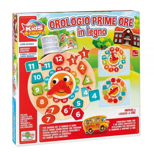 L’OROLOGIO PRIME ORE E’ UN GIOCO EDUCATIVO ED UTILISSIMO PER INSEGNARE AL BAMBINO A CONTARE LE ORE, FATTO INTERAMENTE IN LEGNO NATURALE CON COLORI MOLTO VIVACI STIMOLA L’ATTIVITA’ LUDICA MANUALE