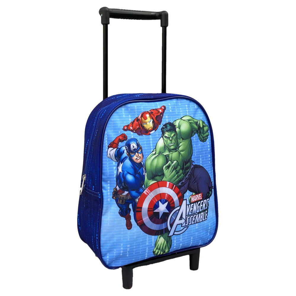 Zaino con ruote Avengers Dimensioni: 24x28x10 1 scomparto con zip Zaino con ruote Avengers, ruote silenziose. Manico telescopico. Chiusura con cerniera